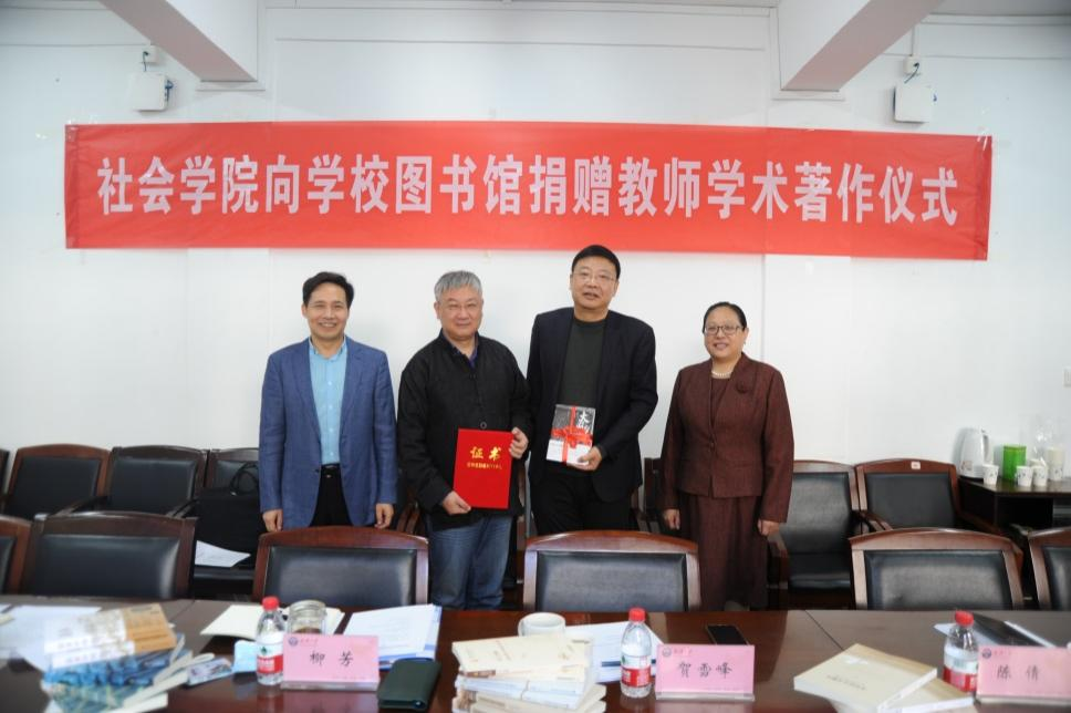 向学校图书馆捐赠教师学术著作仪式暨座谈会在学院111会议室隆重举行。图书馆党委书记尤传明、馆长董有明等一行7人莅临学院,杏吧原创