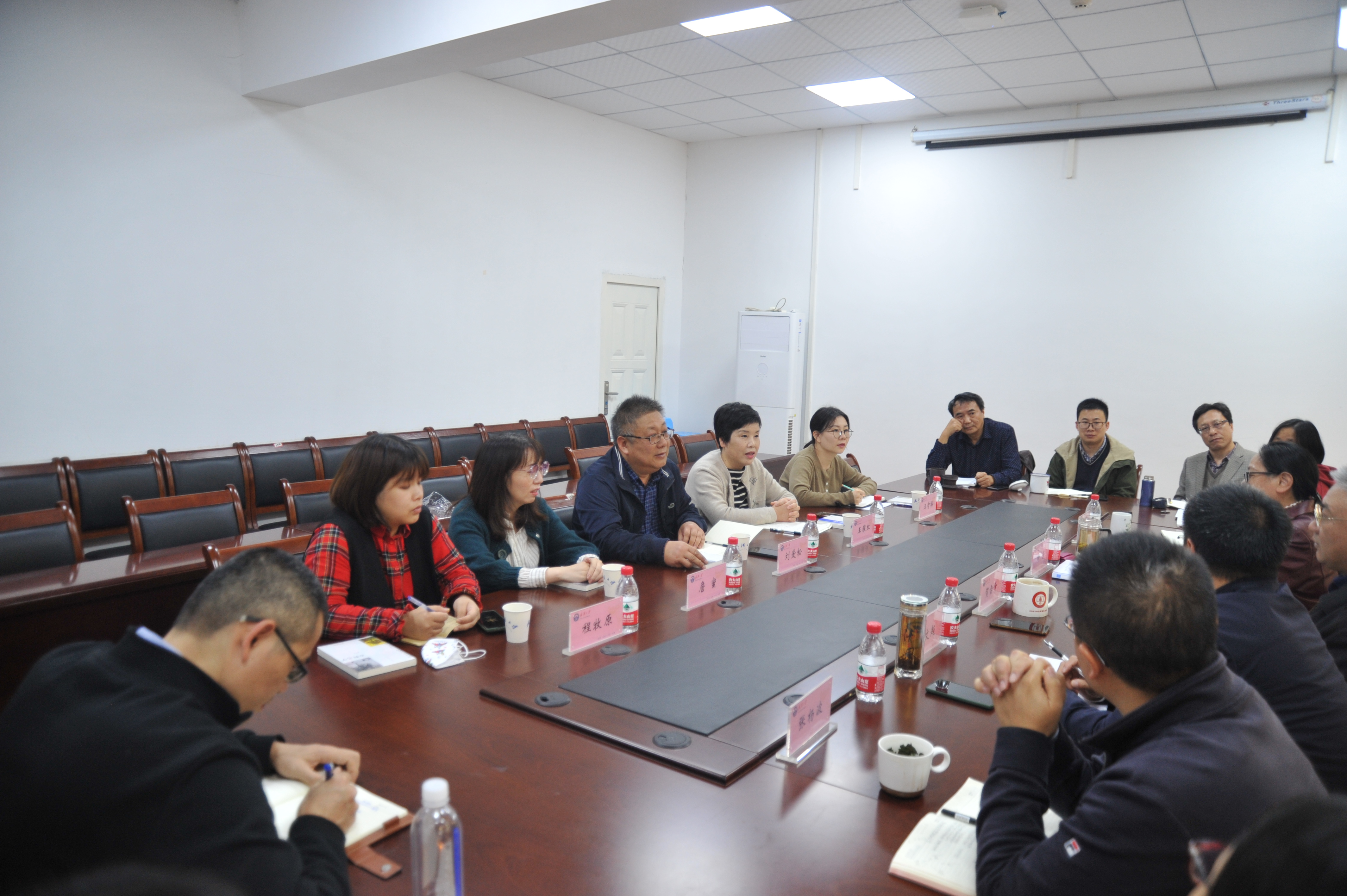 党委书记柳芳、院长贺雪峰、副书记司文超、副院长伍麟、张杨波等院领导亲切会见了刘爱松总编一行,桂胜、桂华等10余名教师代表参加座谈交流会。