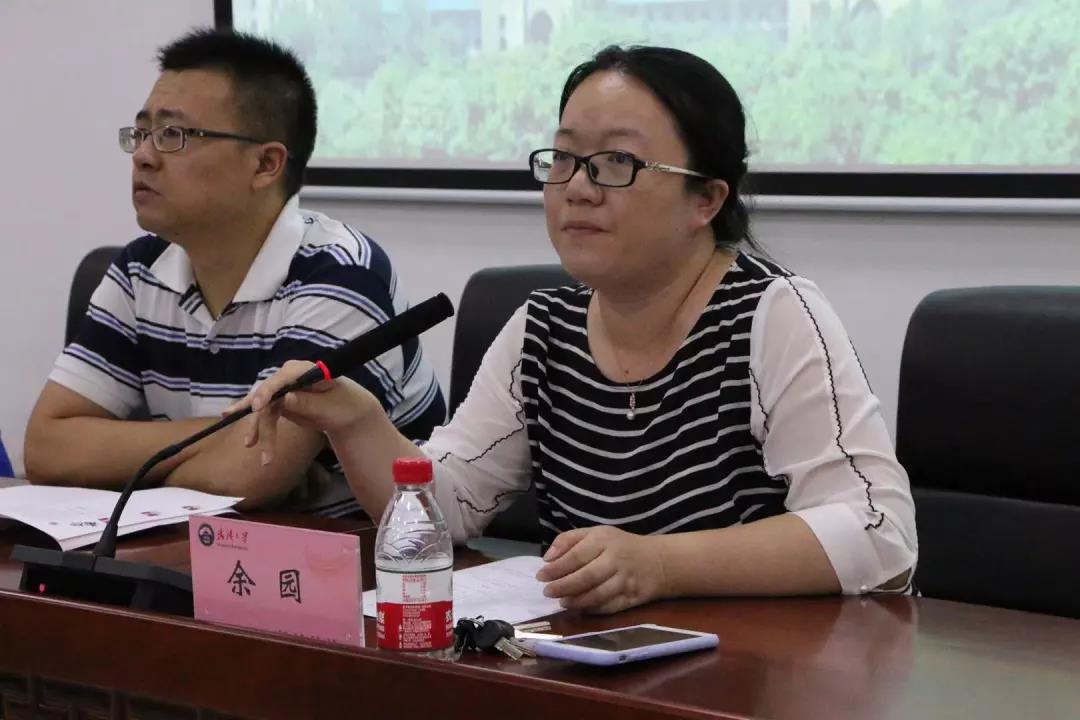 党政办副主任、本科教学秘书余园老师向大家介绍了大学教学规划以及其他教务相关信息,包括选课、学分学费、辅修、保研、毕业要求等。余老师的介绍及时地为新生解决了与上课、考试相关的困惑。接下来,杏吧原创