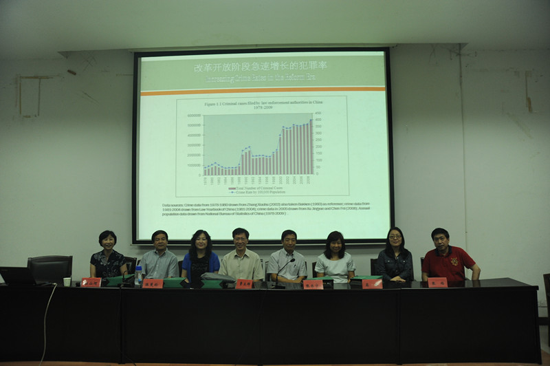 此次演讲内容主要包括新社会学思考,统计在犯罪研究中的应用,犯罪研究的社会学视角,中西毒品犯罪及毒品法比较,台湾警察政策研究之最新发展及中国死刑观研究等。讲座伊始,由曹立群教授作了《社会学的新思维》的学术分享。他在研究前人的基础上又结合中国的历史,提出了“犯罪学的东方主义”的新概念,准确地对中国的犯罪现象进行了准确精准的描述。接下来,张焰教授作了《统计在犯罪研究中的应用》的报告,她对统计学在犯罪学中的最初应用、早起应用、深入应用及研究方法的创新、最前沿的把时间和空间联系起来的研究方法进入了深入的介绍和分析。使广大师生对统计学在犯罪学中的应用发展脉络有了清晰的了解。张乐宁教授的《犯罪研究的社会学视角》则拓宽了大家对现有社会学研究的认知。他主张要在社会背景下研究个人,并采用嵌入的方法把犯罪的青少年放到他生活的广大背景下去研究。通过家庭、同学群体、学校、邻居、社会结构等层面分别对青少年的犯罪行为进行深层次的解读,了解他们犯罪的动因。随后高欢教授带来的《中西毒品犯罪及毒品法比较》则掀起了大家对研究方法、研究途径的新思考。她通过对吸毒和贩毒人员的深入访谈,获得了珍贵的一手资料。并结合中国和美国公开发表的相关数据,对两个国家的毒品犯罪现象进行了对比分析。此外,她还对中国从建国到现在的毒品犯罪问题进行了脉络分析。而来自台湾的陈斐铃教授则给我们介绍了台湾警察政策研究的最新发展,她通过考察警察政策研究与法学关联、台湾警政发展、台湾警察政策与法学研究以及台湾法学研究之最新发展几部分,清晰地给社会学系的师生们展示了台湾警察政策发展的过程,也使内地学生对台湾的警察政策有了进一步了解。最后,江山河教授带来的《中国死刑观研究》把整场讲座带入了高潮。他通过对不同地区、不同身份、不同性别、不同职业、不同阶层、不同种族的人发放调查问卷的方式,来观测不同的人对死刑的看法。并发现同为中国人,国内的中国学生和在美国读书的中国学生竟然有不同的死刑观,而且差异显著。