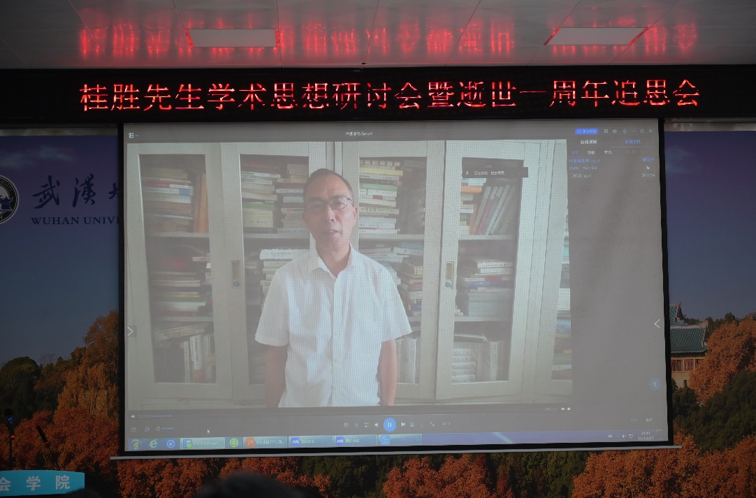 教授黄献文、湖北省社科院原院长宋亚平、广西大学教授闭伟宁、深圳大学教授易松国、武汉软件工程职业学院工会常务副主席黄贤文、湖北省政协港澳台侨和外事委员会原副主任严荣利、湖北大学教授廖声武、华中师范大学副教授但昭彬分别追忆了与桂胜先生的交往经历,高度赞扬桂胜先生热情大方、为人正直、淳朴善良等高尚品格。昆明学院副教授熊开万以“淑景如昔,恩泽如滴”为题,深情地表达了对恩师桂胜先生的无限追思。他谈到自己“受教于函杖恩同渊泉,传术于林下淑景如昔,音容俱已杳闻,爱忾亦将久寂。思慕殷殷,哭泣无时”,深感先生遗留了极丰富广大的学术遗产,值得仔细品味与传承。
