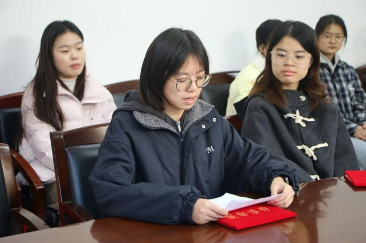 安艳茹和严佳作为获奖学生代表发表了获奖感言。她们表示将铭记学校与学院的教诲,感念校友的关爱与帮助,将此份善意化作前行路上的不竭动力,始终树立高远的理想追求,保持谦逊的学习态度,为国家和社会发展贡献青春力量。
