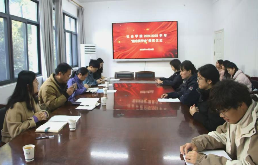 “励志奖学金”颁奖仪式在学院111会议室举行,严佳、曾欣瑶、安艳茹、曾梦婷等四名本科生、研究生获得表彰。院党委书记柳芳、副书记应志豪、班主任代表、辅导员、获奖学生及学生代表参加了颁奖仪式,仪式由院党委副书记应志豪主持。