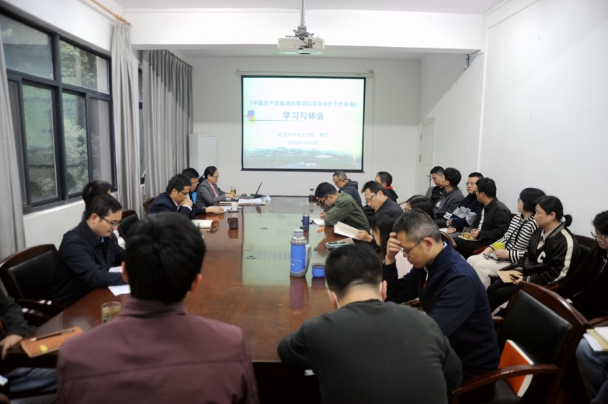 党委书记柳芳以《中国共产党普通高等学校基层组织工作条例》(以下简称条例)为切入,在学院111会议室为学院全体教职工党员讲授党课,谈了学习与体会。会议由教职工第一党支部书记桂晓伟主持。