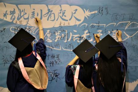 社会学系2017届学生毕业典礼暨学位授予仪式在珞珈山庄一号会议室举行。在仪式正式开始前,毕业生们穿着漂亮、庄重的学士服,在毕业纪念签名墙上庄严地留下了自己的名字。此次典礼,便是社会学系送给这些即将踏上新征程的学子们的毕业礼物。