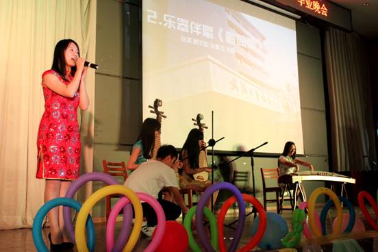 大二的小梅西为大家带来晚会的第一首歌曲《花田错》,四位古典美女身着旗袍,带来乐器伴唱《眉间雪》,给大家带来一场独特的视听盛宴。同学们还悉心编排了小品《新官上任》,祝福学长学姐工作顺利,霸道总裁“纸老虎”的窘态令学长学姐们捧腹大笑之余颇为感动。
