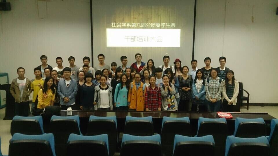 2014年10月26日星期日晚,社会学系第九届分团委学生会干部培训大会于社会学系报告厅圆满召开。这次大会让新加入学生会的新生们收获颇丰,加深了新老生之间的友谊。