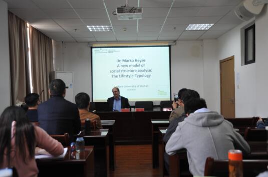 3月31日下午,应社会学系邀请,德国明斯特大学周俊博士和Marko Heyse教授来访我系,并为我系师生带来主题分别为“我们从德国学什么?德国城市建设给我们的启发”和“A New Model of Social StructureAnalyze: The Lifestyle Typology”的讲座。讲座由伍麟教授主持,我系博士、硕士研究生和段文杰副研究员等部分教师参与了讲座。