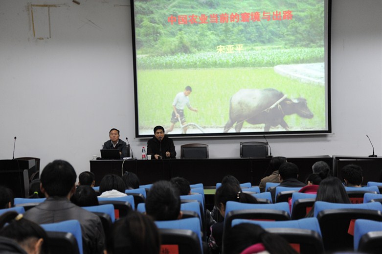 11月18日下午,应社会学系的邀请,湖北省社会科学院院长宋亚平教授做客社会学系,为我系师生带来了一场题为《中国农村当前的窘境与出路》的精彩讲座。此次讲座由系主任林曾教授主持,他首先向大家简要介绍了讲座嘉宾宋亚平教授的个人经历及学术背景,并对他的来访表示热烈欢迎。我系博士研究生、硕士研究生及部分教师参加了讲座并在现场与嘉宾进行了良好的互动。